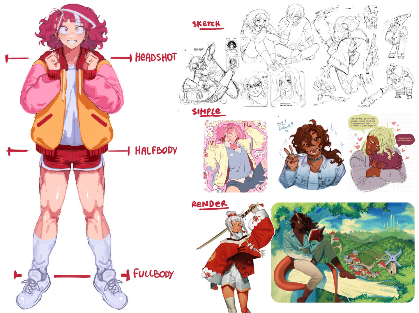 | Simple: | Headshot: $35 | Halfbody: $50 | Fullbody: $70 |